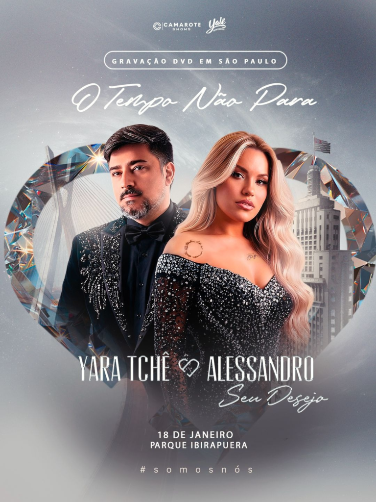 Iniciando 2026 com o pé direito, Yara Tchê e Alessandro, à frente da banda Seu Desejo, anunciam a gravação de seu novo DVD “O Tempo Não Para”. No entardecer do dia 18 de janeiro, em um show aberto ao público, em São Paulo, no Parque Ibirapuera — um dos espaços culturais mais emblemáticos do país, o forró romântico viverá um dia inesquecível.